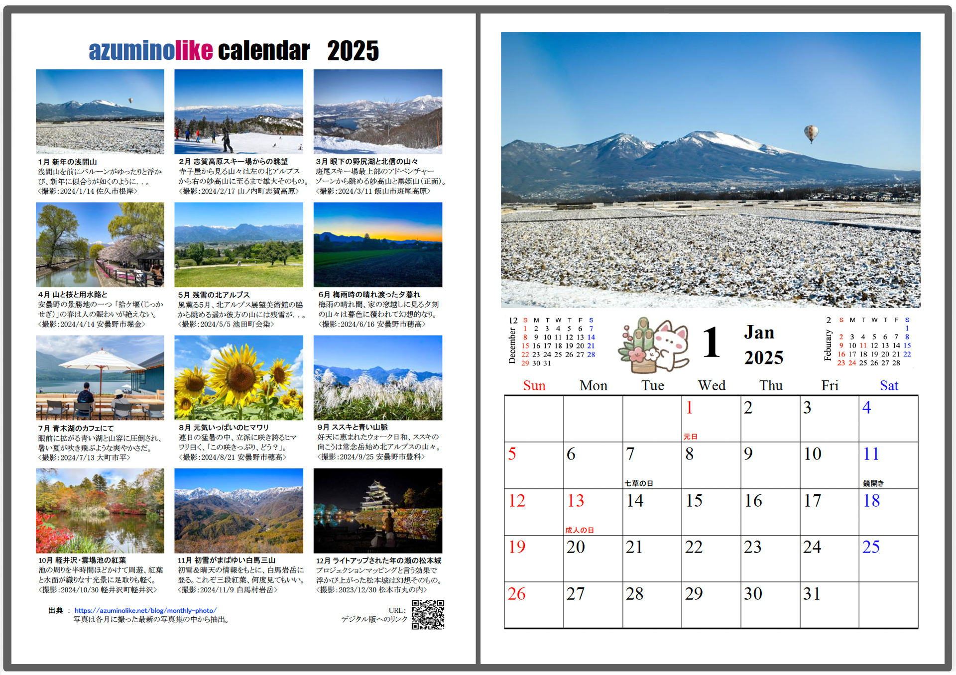 例年、自前で作るカレンダー、まだ早いけど準備を進めることに。早めた理由は来年のカレンダーはExcelファイルでフルオートで各年のカレンダーが作成できるようにしたいがため。2025年版は50部ほど作成した。来年2026年版も同様数にする予定だけど、再来年はぐっと部数を減らす予定だ。そのため、このカレンダーを印刷するためのフルオートのExcelファイルを何らかの形で知らしめて、再来年以降も同様なカレンダーをご希望の方は自らその方の写真のオリジナルカレンダーを作成できるようにPRしたいと思っている。さて今年のカレンダーは、
