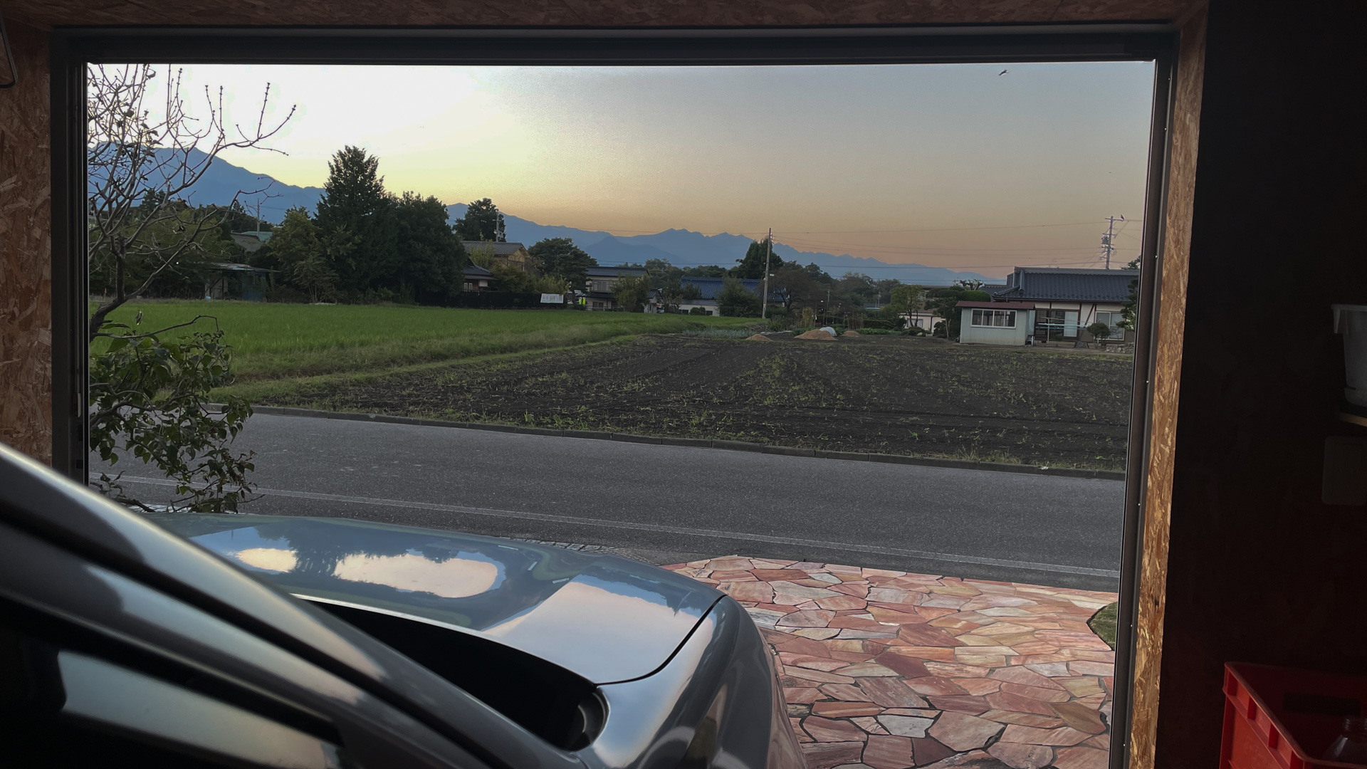 家のガレージからは夕暮れ時の淡い暮色が刺してきた。時刻は17:10ほど。