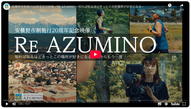 市制施行20周年記念動画「Re AZUMINO」だ。実は前々からこのビデオが10月に公開されることを知っていて、どんなものなのか楽しみにしていた。実際にこのビデオを觀て、拍子抜けした。予想していたものとかなり違ってる。う〜ん、これでいいの?が実感。一言で言えば「これの何が20周年記念なの?」だ。市民のために作られたものではなく、安曇野ってどんなところかを外部の人のために作られたPRビデオの感じだ。人口減の今、少しでも移住してきて欲しいことを市の幹部が全面に押し出してきたイメージのシナリオだ。これでは、20周年のポリシーとは違うでしょう。