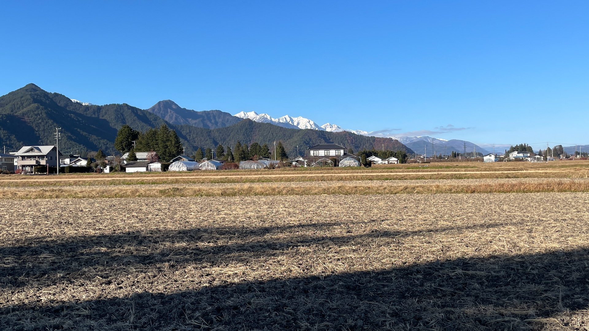 松川村の「ちひろ美術館」の近く。ここものどかで静かだ。まるで時間が止まってる。人家はあるけど、まーるで人は見えない。静かだぁ〜。つくづく気付く、これが普段生活だと。