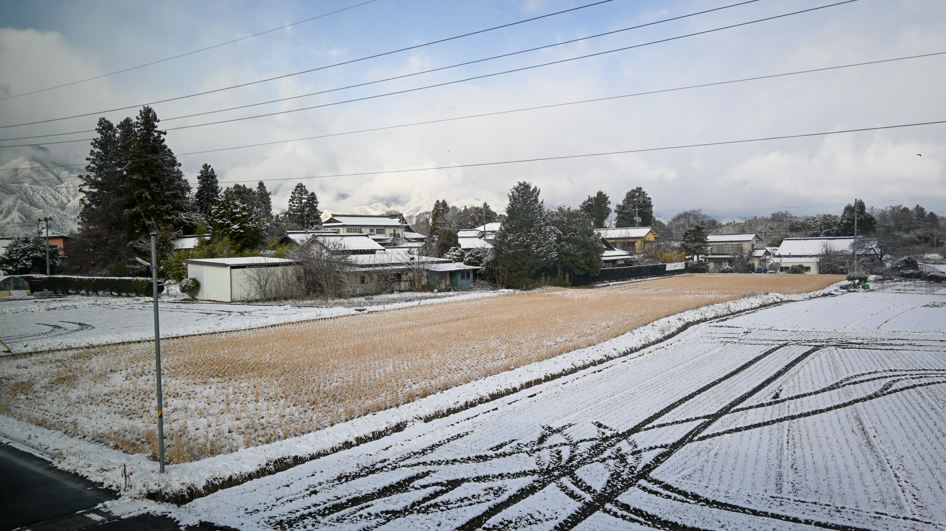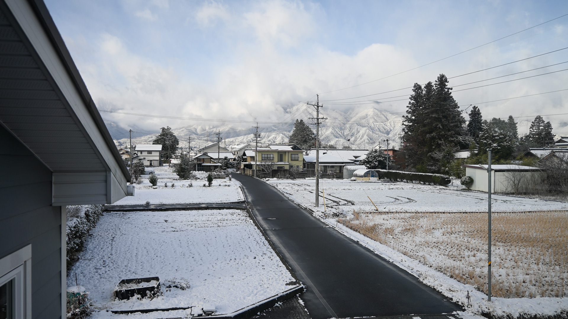 昨夜から今朝にかけて、安曇野にも初雪となった。騒がれた割には積雪は、