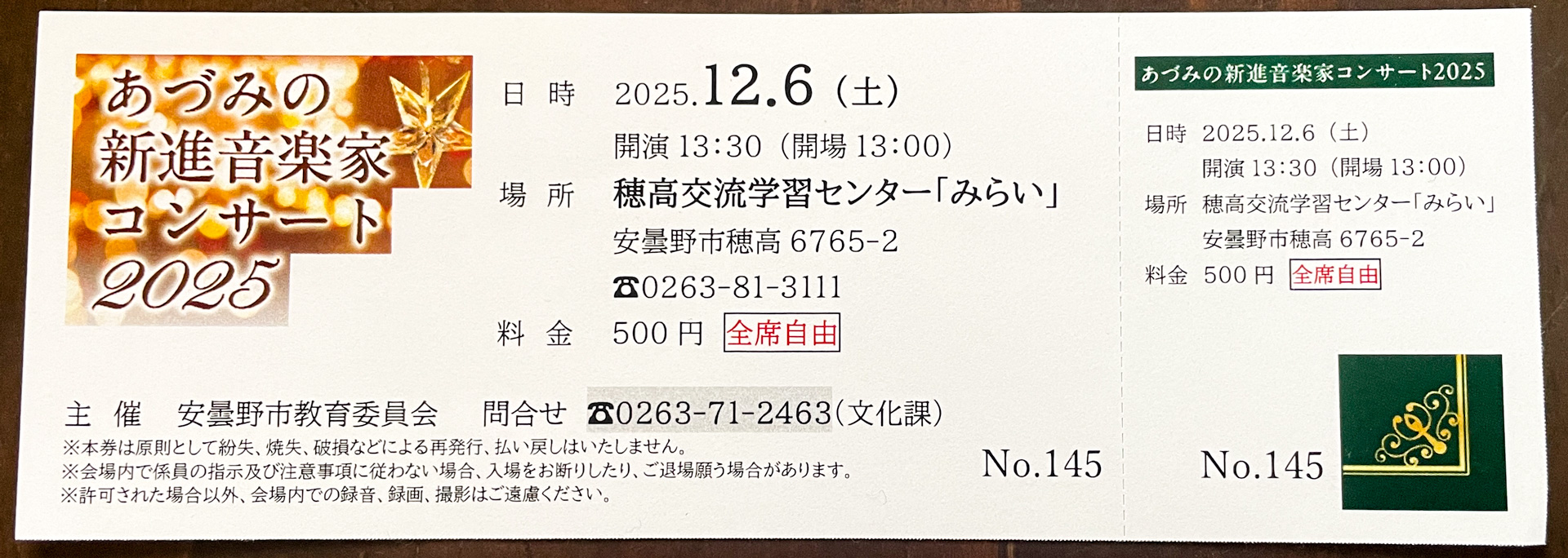 このところコンサートから遠ざかっている。記憶している限りでは、前回は確か昨年末の松本でのコンサートだったか。今日は久方ぶりに近場のコンサートに出かけた。