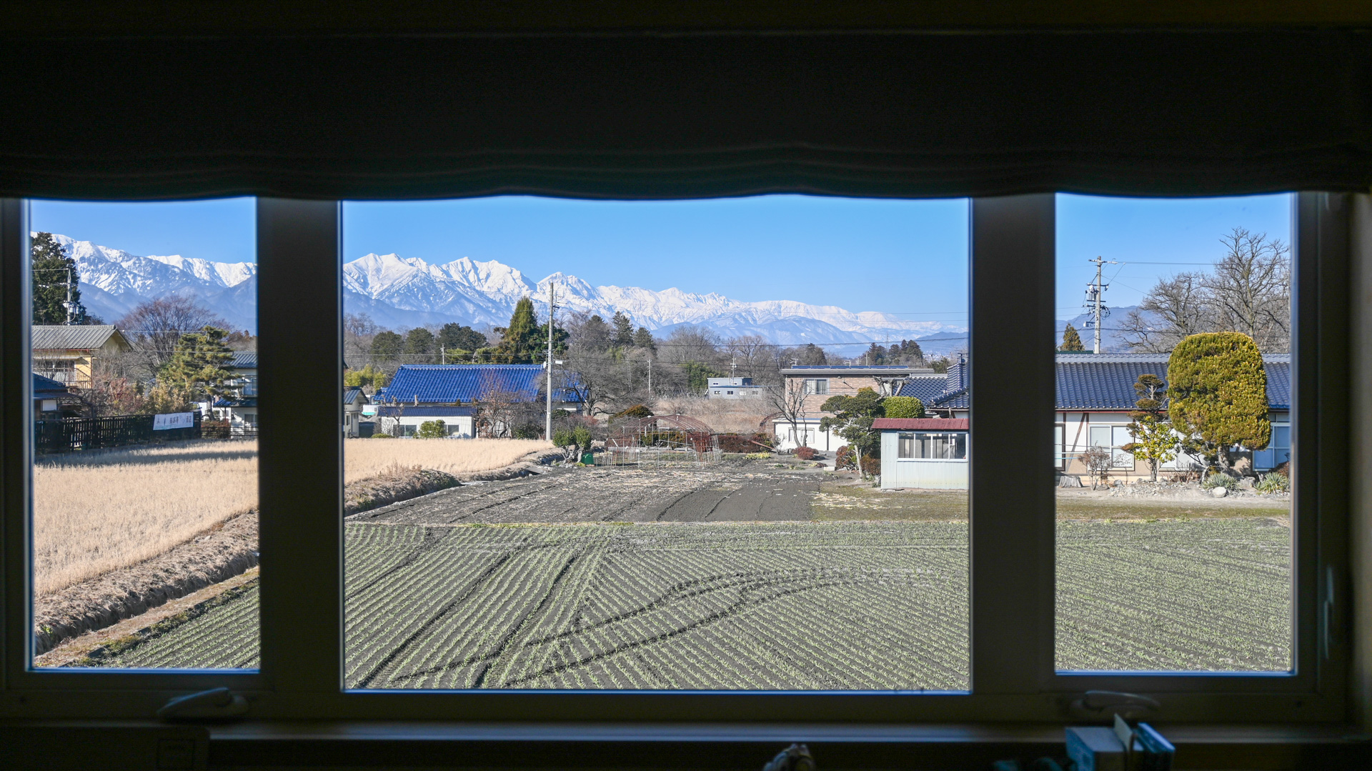 今日は風もなく、よく晴れた。雲一つない快晴がずっと続いたのも珍しく、窓越しに1枚写真を撮った。