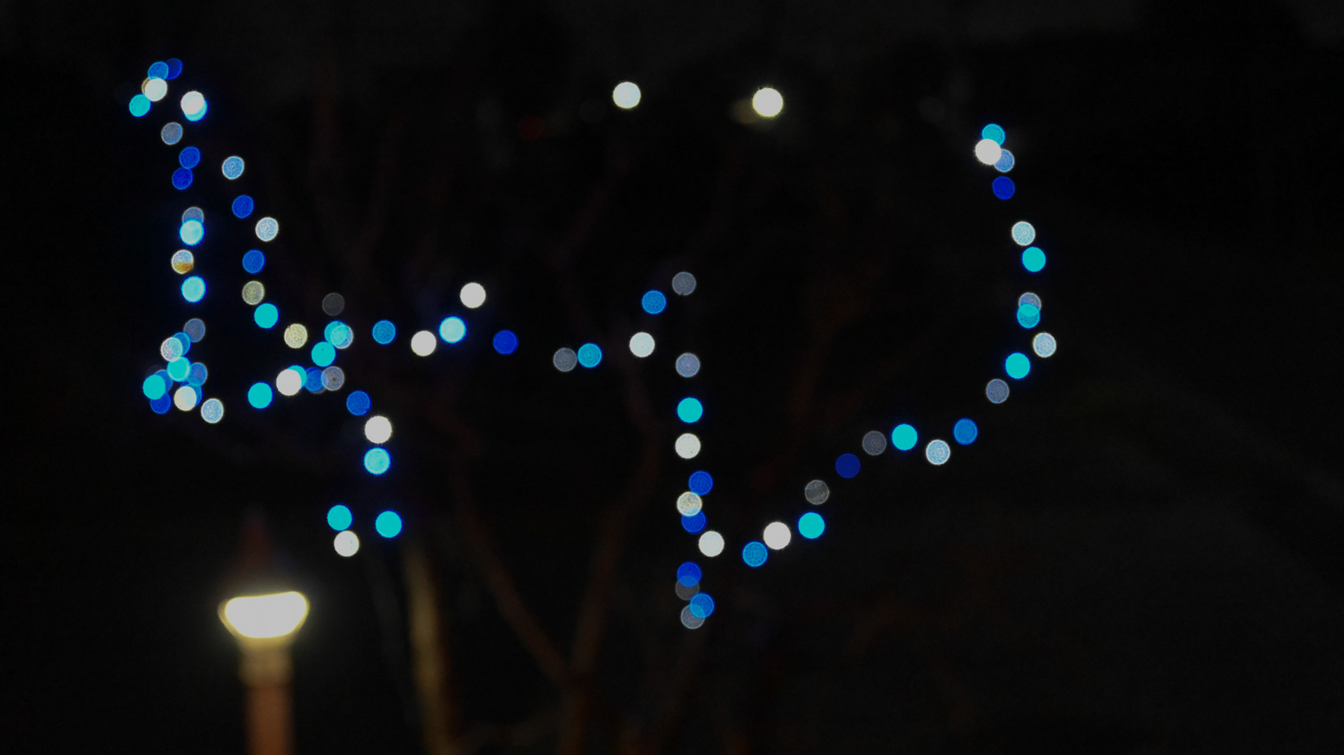 我が家の玄関先のイルミネーション。とても地味だが、今日の日にはなぜか様になってる感じ。何枚か撮った写真の中にはこんなのが..