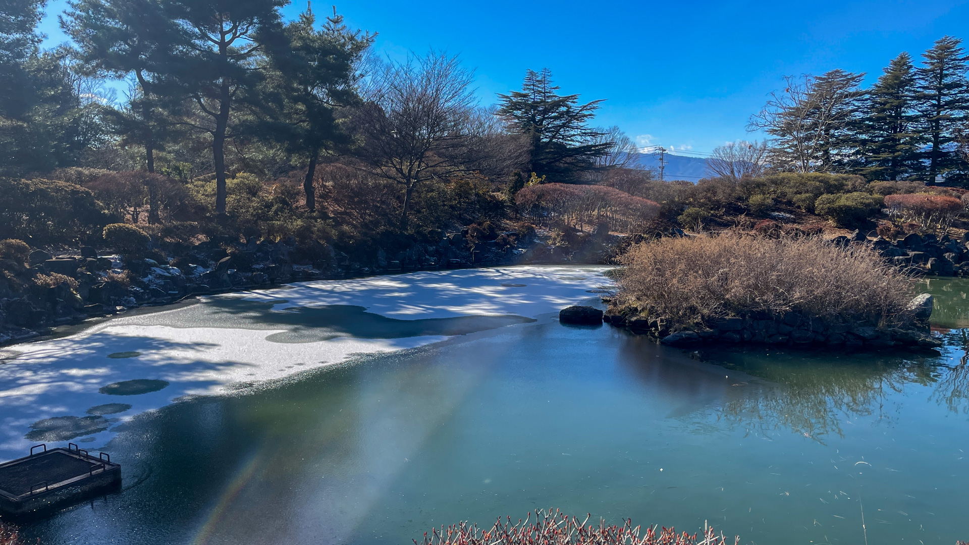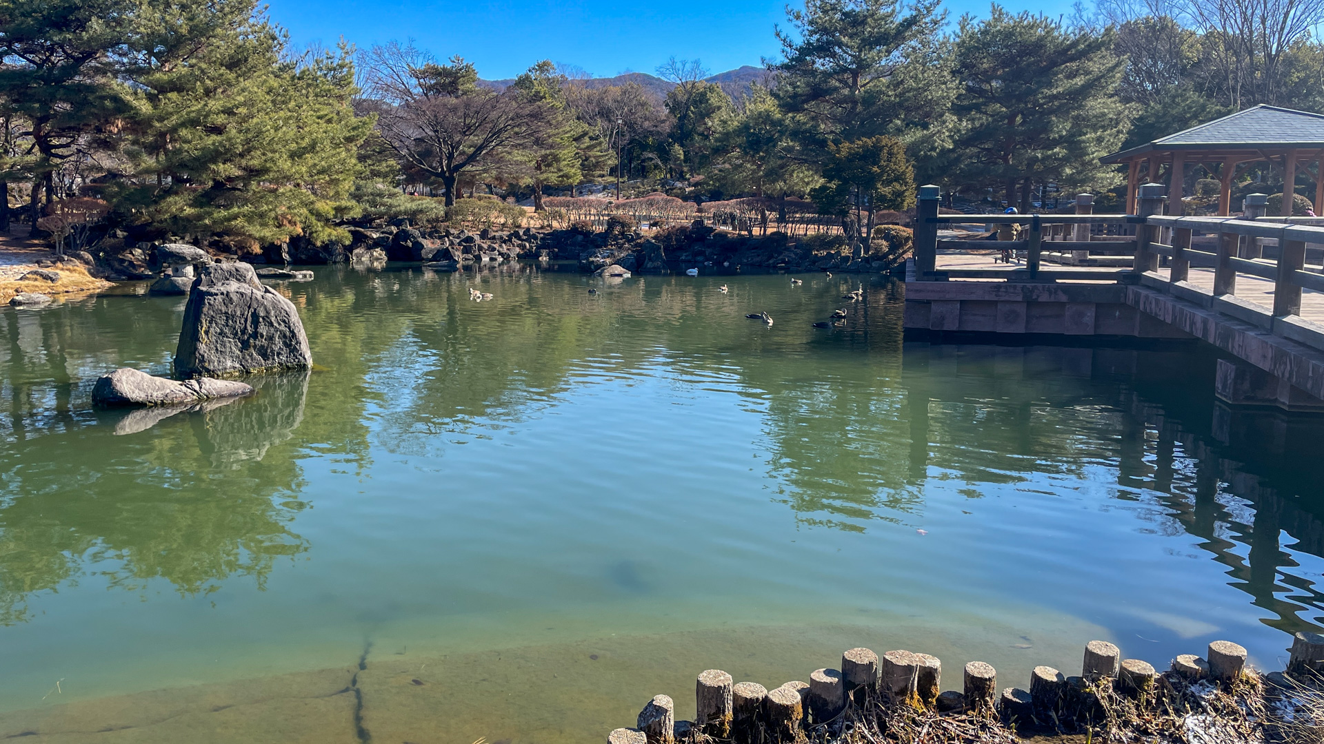 凍りついてる。厳寒の年はさぞ一面が凍りつくのだろうが、今日はとても穏やかで日射しの暖かさを十二分に感じた。駐車場も完備していて、弁当持参が似合う憩いの場だ。ちょっとした散歩にもうってつけで、これで年間通じて楽しめるのを確認した。