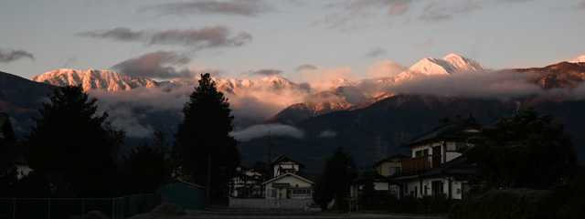 今日は1月最終日。新年も既に1ヶ月が過ぎようとし、月末の月例写真のアップデートとなった。今月は元旦の早朝、我が家から直近の場所で撮った初日の光景。7時13分、日の出方向とは真反対の北アルプス側では初日の出を浴びて赤く輝いていた。新年ならではの光景に思わず手を合わせ初祈願!