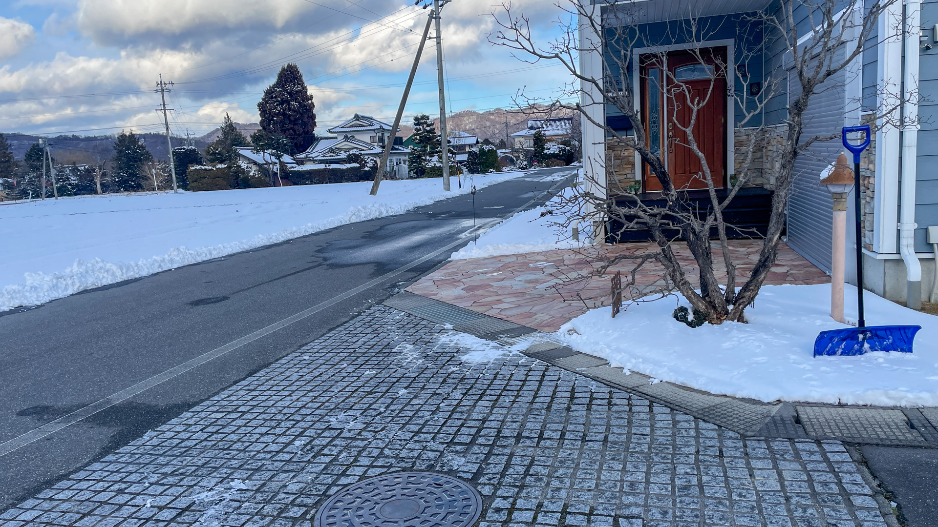 結構、積もりシーズン初となる本格的な雪かきで、今までは玄関先を少し雪かきすることはあったが、今日は全面雪かきとなった。夕刻の家の外はこんな感じ。