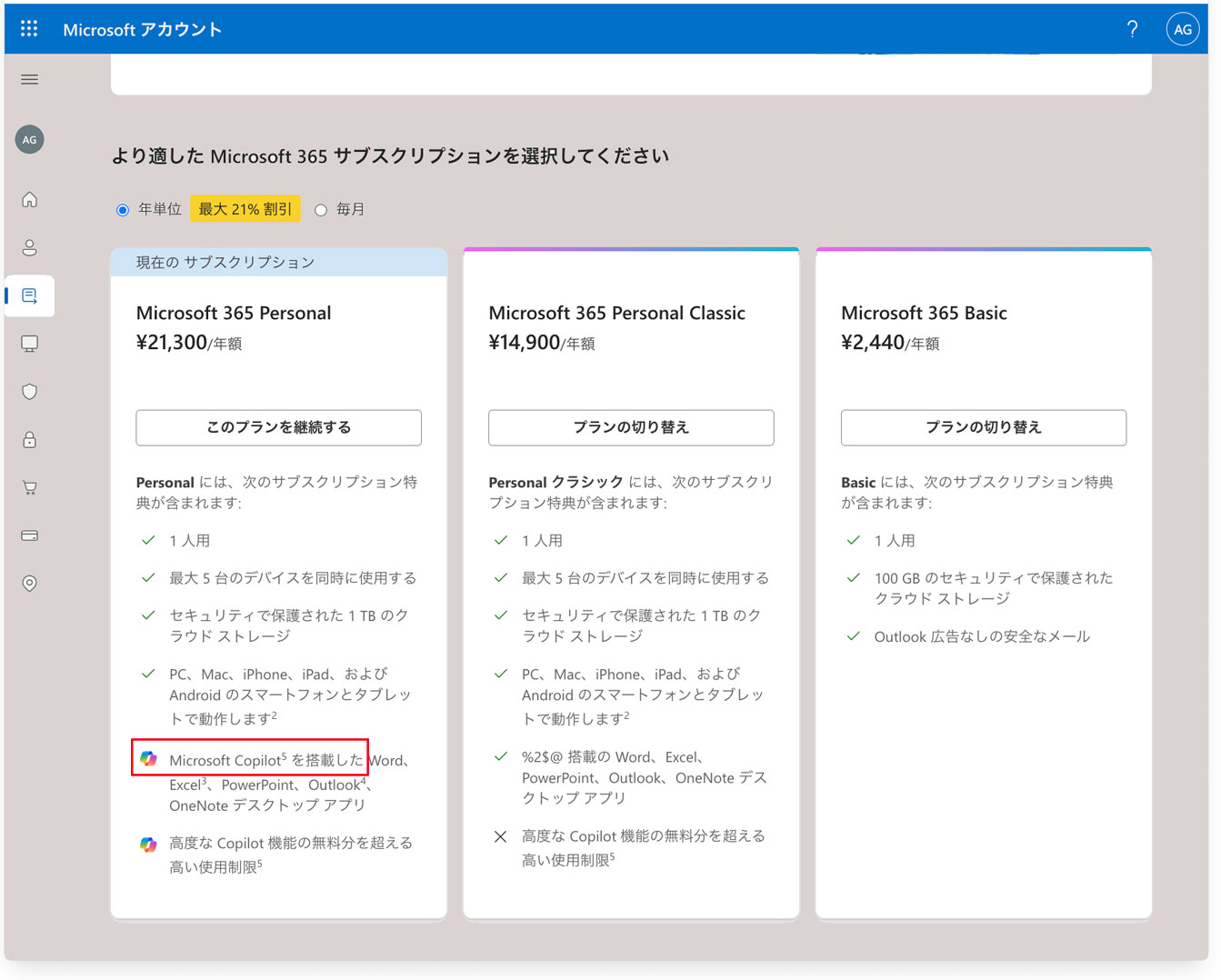 今回、Microsoft 365にも新たにClassicのプランが登場し、従来価格に据え置いた。違いはOffice 相当のソフトにMicrosoft Copilotの有無で価格差を設けたようだ。AIはやりの昨今で、CopilotのAI機能が使えない違いはあるが、実は今のOfficeでCopilotが勝手にしゃしゃり出て迷惑する経験もあって、ない方がすっきりしている。一方、現在ネットで騒がれているGoogle社の無料AI技術が着目されているようだ。Google Geminiなるもので、今後、調べてみようかと思っている。