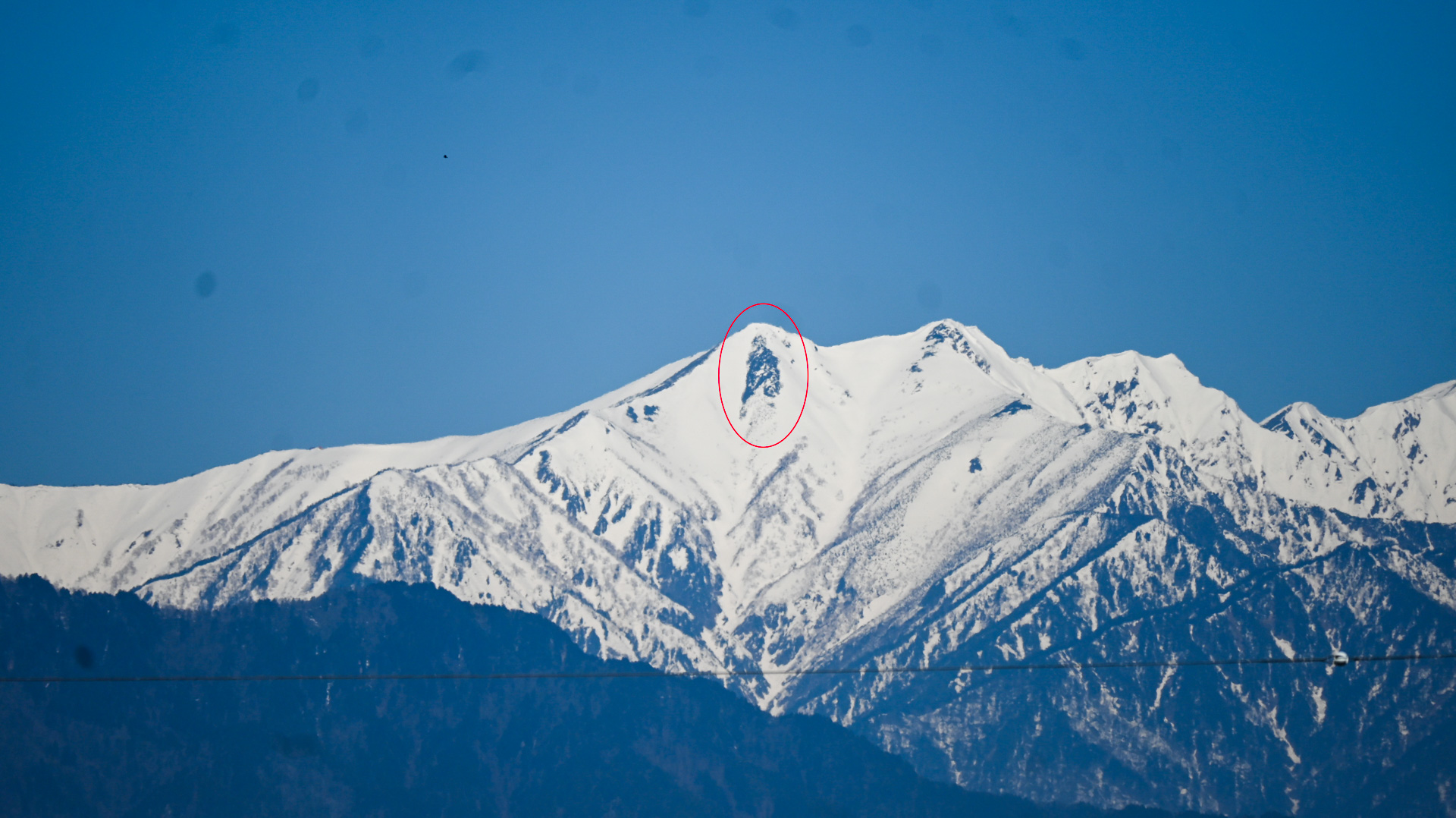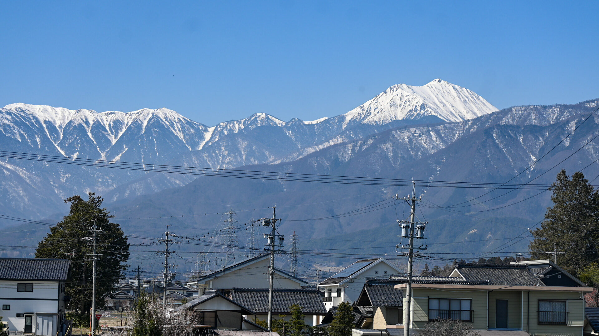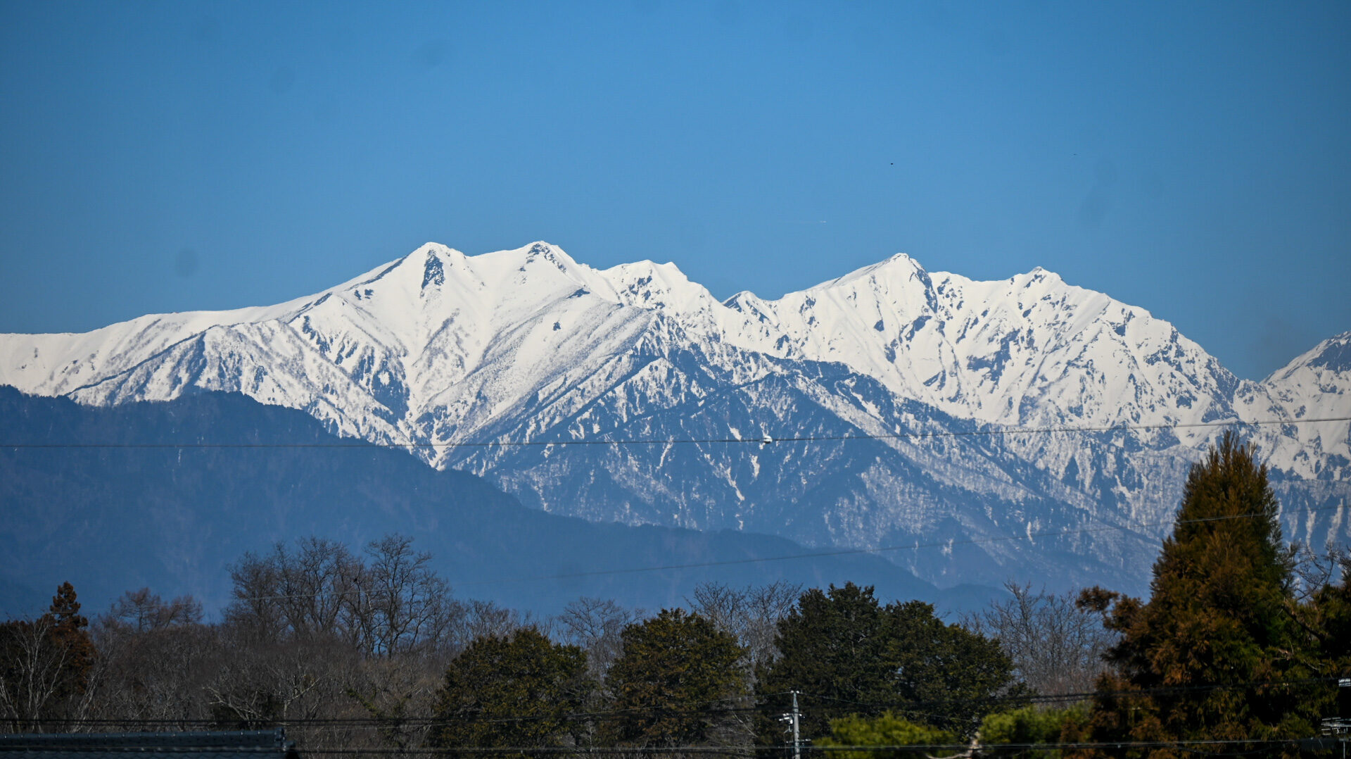 北の白馬山系を見る。これを望遠で少し拡大すると、