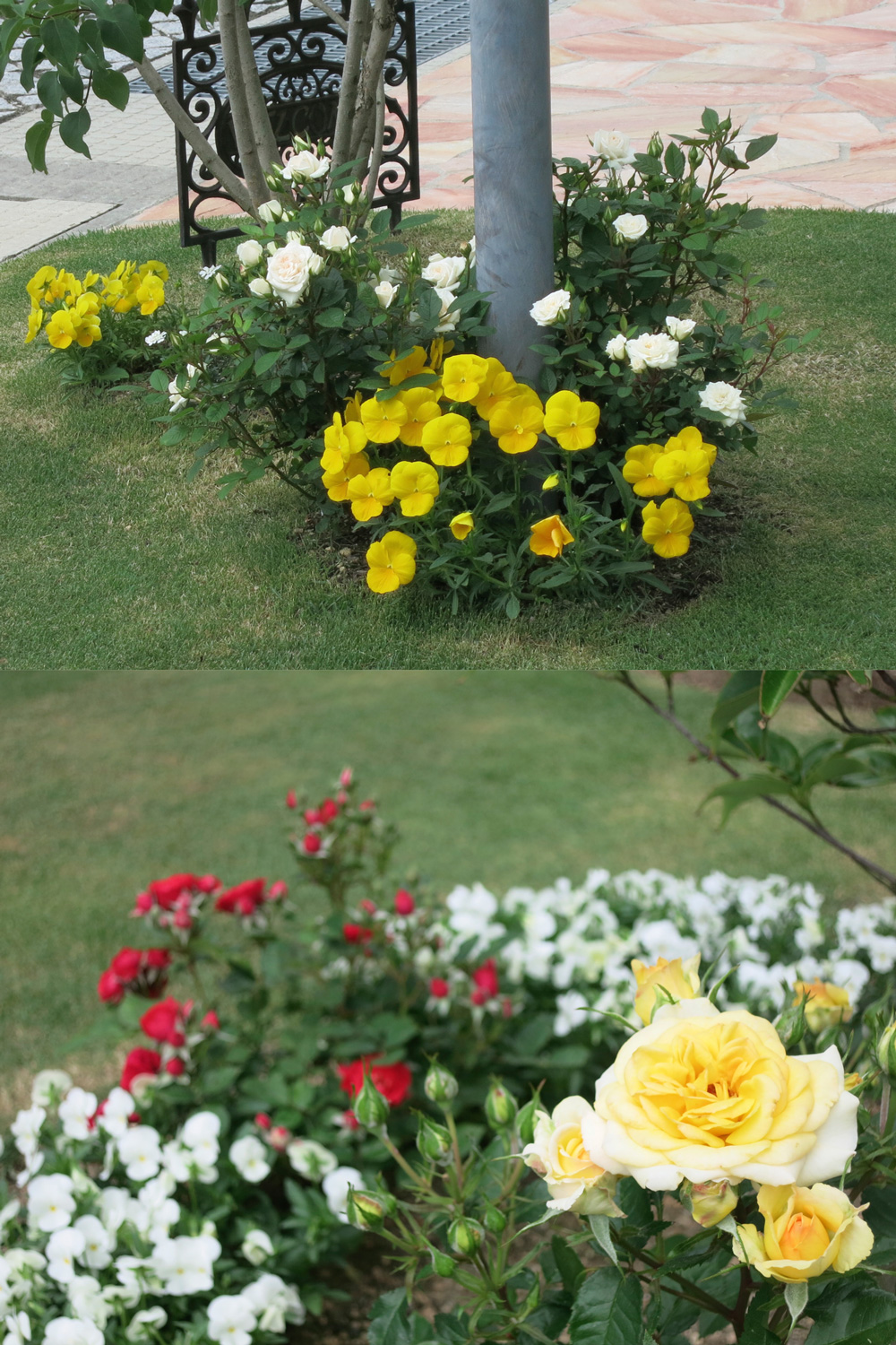 先日、美術館のバラ園に行きましたが、その後、我が家のバラも開花が進みました。今日は梅雨空で湿っぽい日でしたが、薄日も射してバラも元気そうでした。玄関先には白バラ、庭先には黄色と赤いバラが他の草花と咲き合っています。先日のバラ園ほどの見事さはありませんが、小さくその可憐さは自宅ならではの感がします。と言っても、育て方やその手入れは門外漢で、オーナーのカミさんには頭が上がりません。